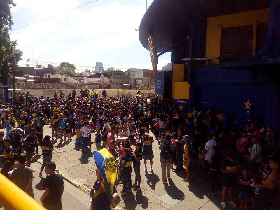 Och vad kan väl bli mer genuint argentinskt än entusiastiska fotbollsfans som samlats utanför arenan La Bombonera?