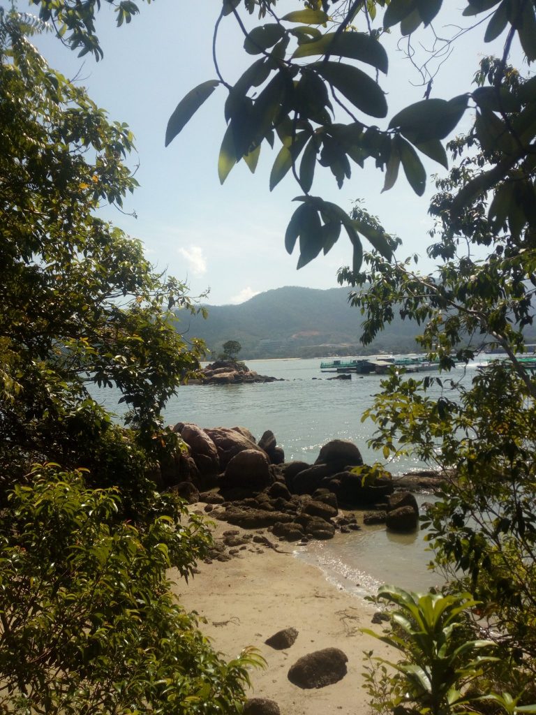 Min vandring fortsätter genom grönskan tills jag kommer fram till en vacker strand där jag sätter mig ner, dricker vatten och pustar ut en stund. Värmen tar verkligen på krafterna och jag känner att det är dags att börja vända tillbaka.