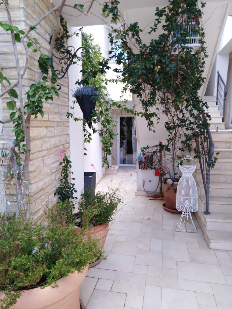 Villa Ankora är ett tre-stjärnigt lägenhetshotell precis vid Makarskas strandpromenad och en kort promenad ifrån gamla stan. Den första bilden från den gemensamma uteplatsen visar hur nära stranden man befinner sig.
