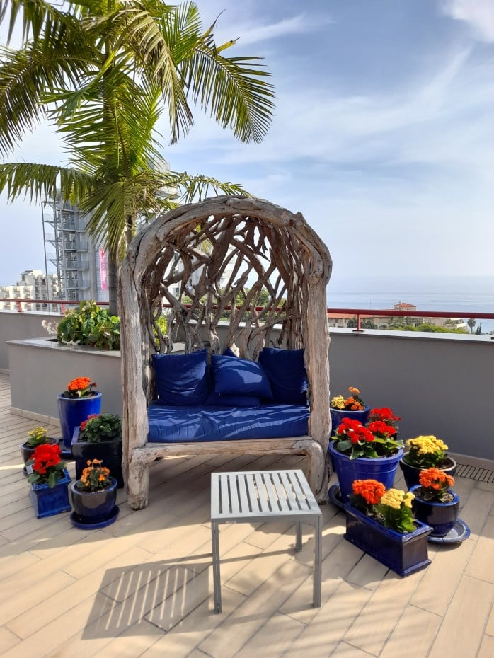 Mätt i magen är det dags att njuta av poolen. Det finns både en djupare pool och en barnpool omringade av solstolar. Men mina favoriter var en trappa upp så att man kunde ligga och titta ut över havet.