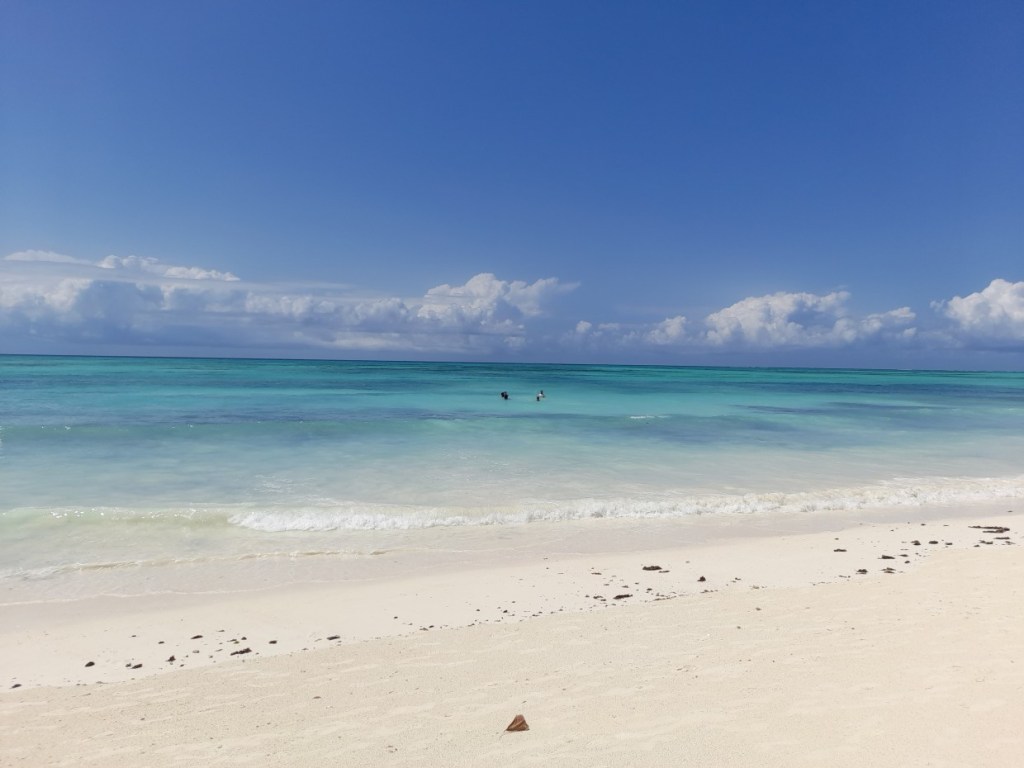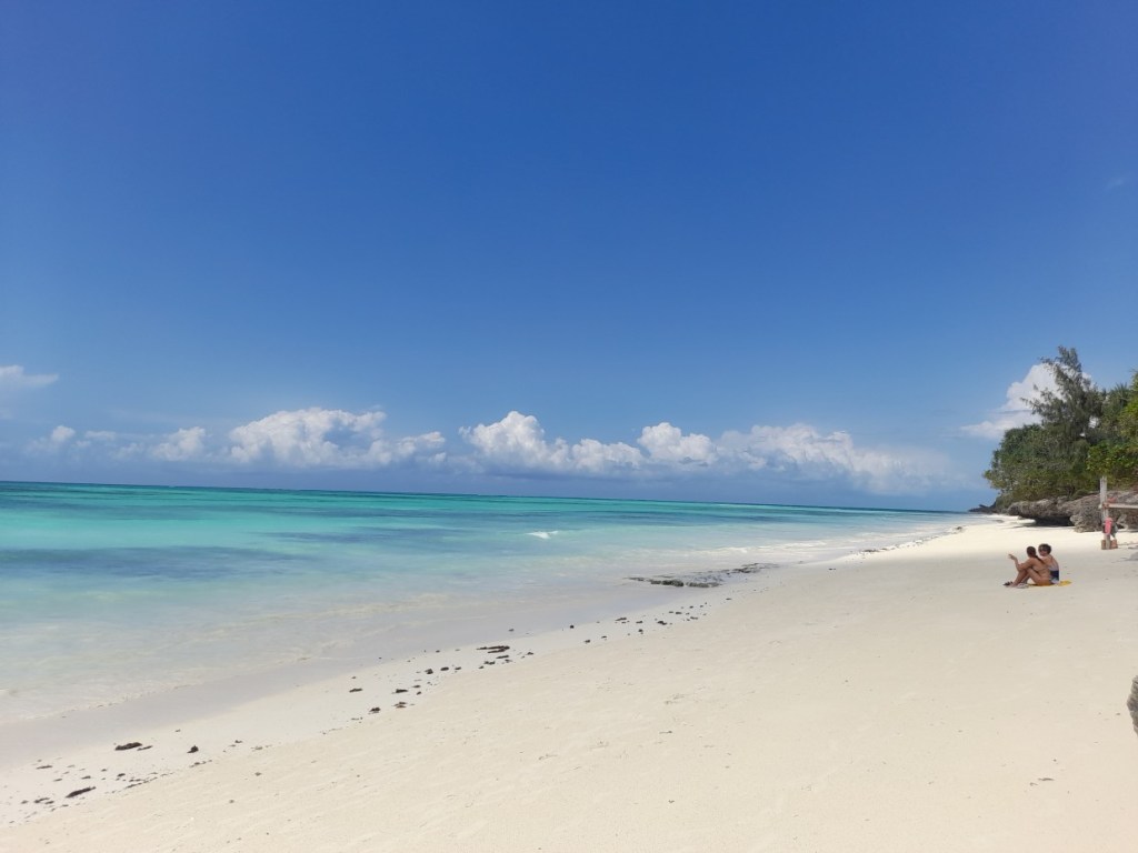 Stranden nedanför hotellet. Färre försäljare än på Nungwis strand, så man får möjligheten att sola i lugn och ro eller ta en promenad i sanden. Det gäller bara att ha koll på tidvattnet så att man kan promenera tillbaka.