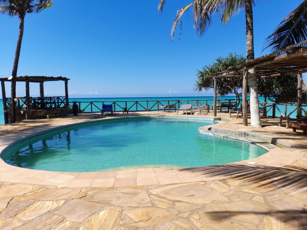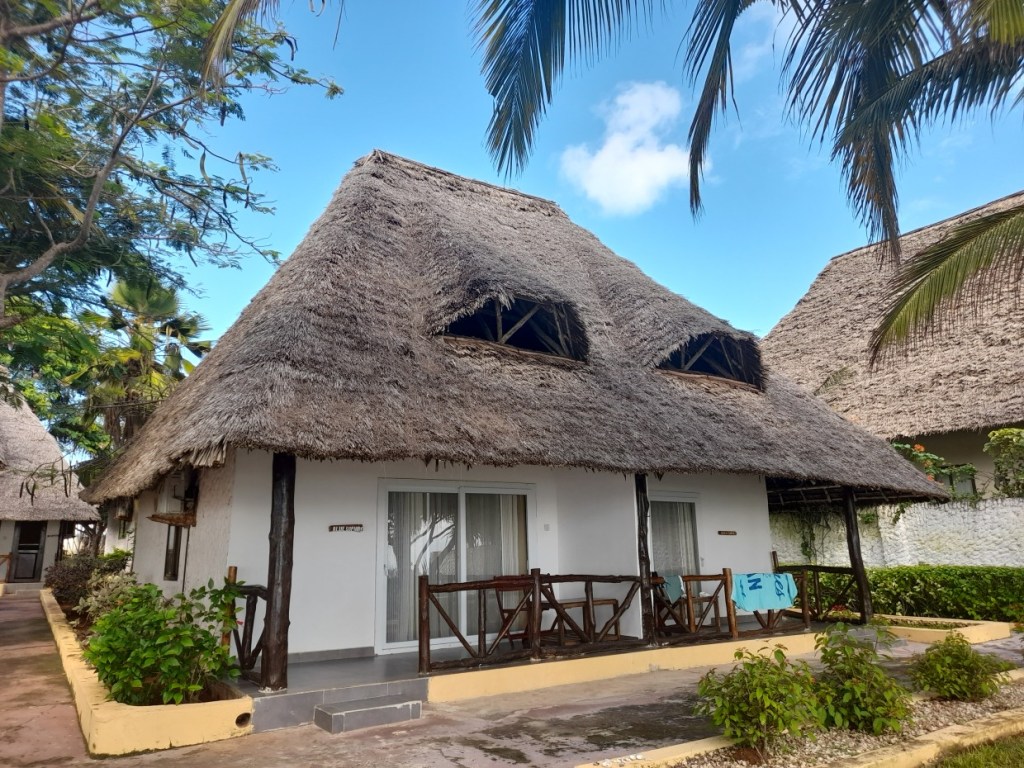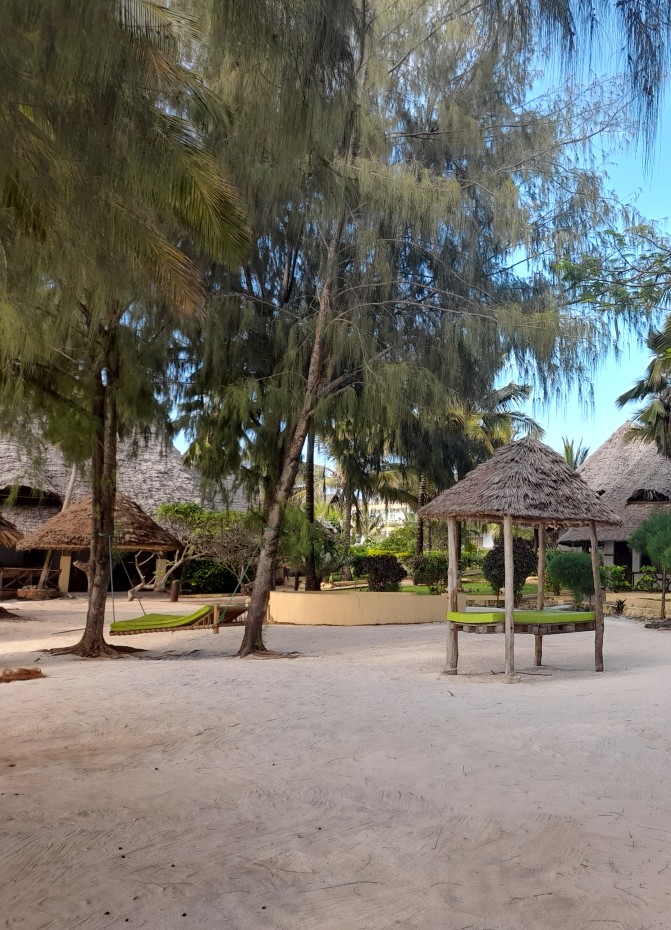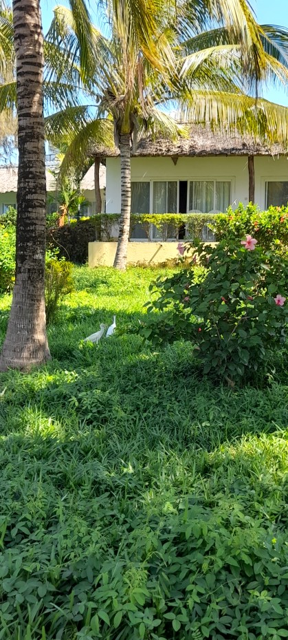 Som en lugn oas i Nungwi. Där i en bungalow med havsutsikt bodde jag, omgiven av grönska, blommor, små krabbor, fåglar, en restaurang och en underbar pool där jag låg och tittade på havet. Alla nätter jag låg på rygg i poolen och flöt omkring under stjärnklar himmel-magi.