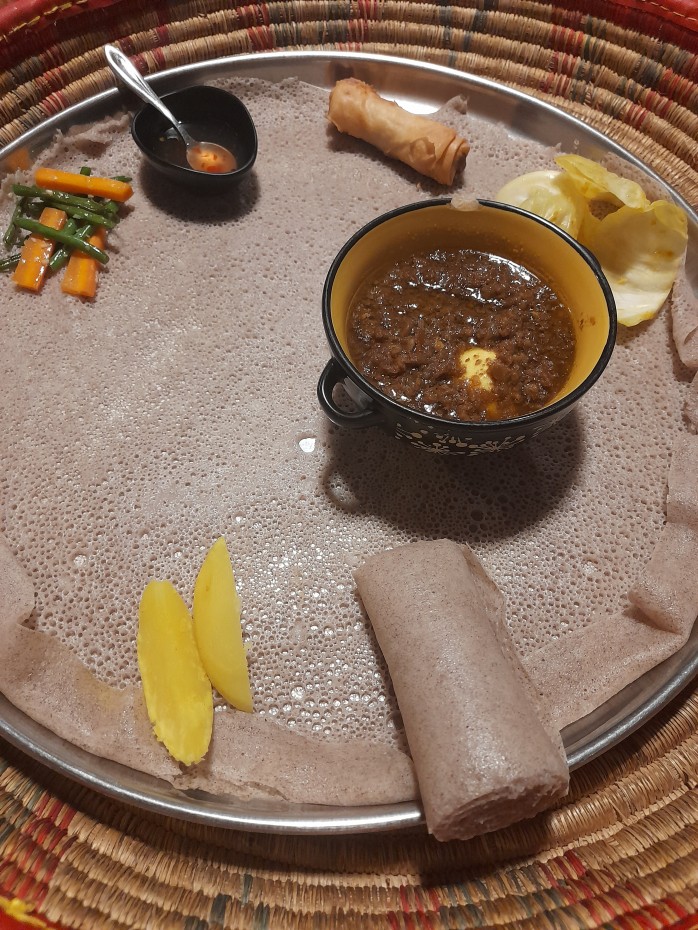 Här serveras etiopisk mat som känns genuin, inte något som bara slängts ihop för att mjölka turister på pengar.
