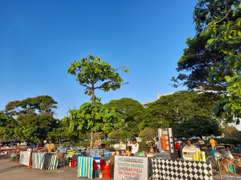 Jag tenderar dock att oavsett ett resmåls negativa delar minnas det med värme och positivitet, och så är det även här. Jag åkte hit från ett regnigt Nungwi i hopp om att vädret skulle vara något bättre, och som ni kan se på bilderna så levererade vädret verkligen. Jag började med att njuta av solen och blicka ut över hamnen. Intill gjorde dom i ordning inför stadens Night Market. Jag hade först tänkt äta där, men när jag såg köttet ligga på borden och flugorna som satt på det så tappade jag suget även på dom andra maträtterna där. Jag bestämde mig istället för att gå in bland gatorna och hålla utkik efter en restaurang.