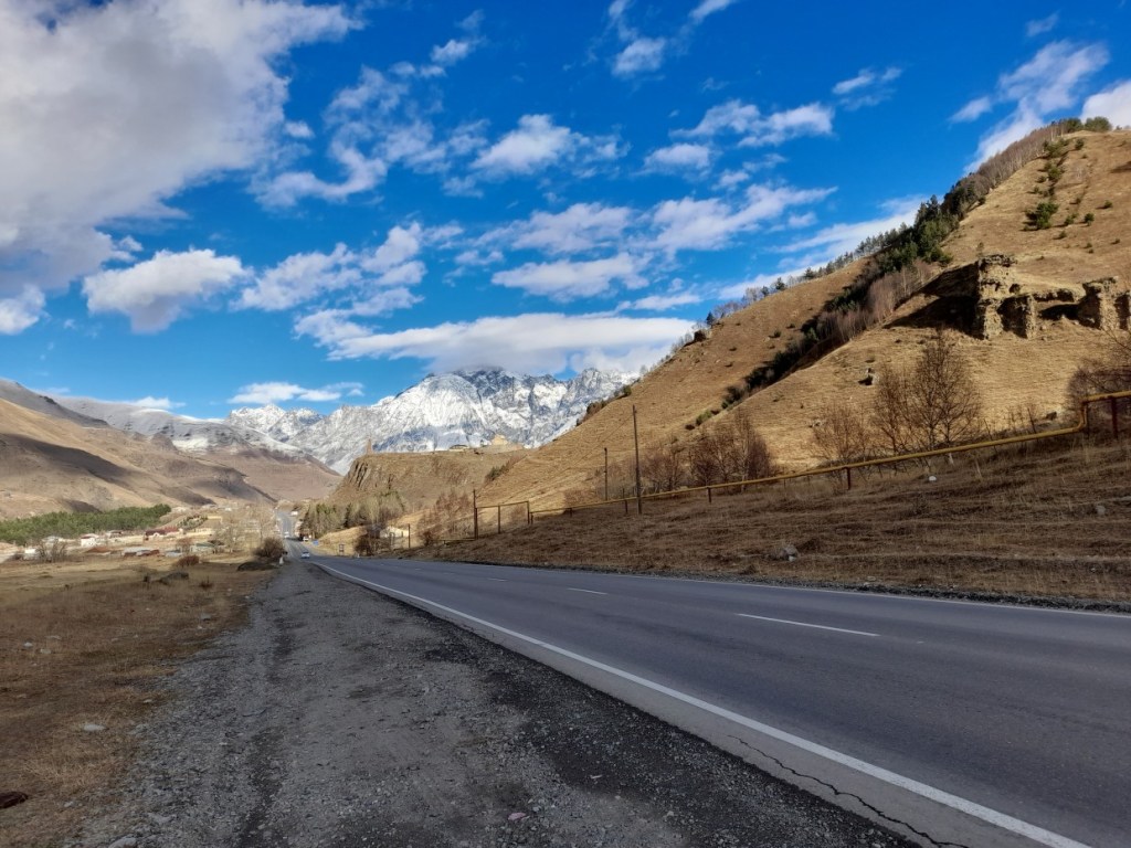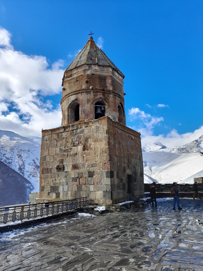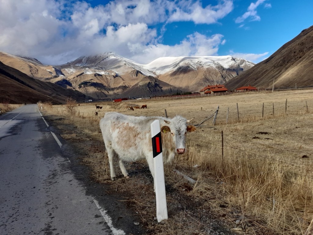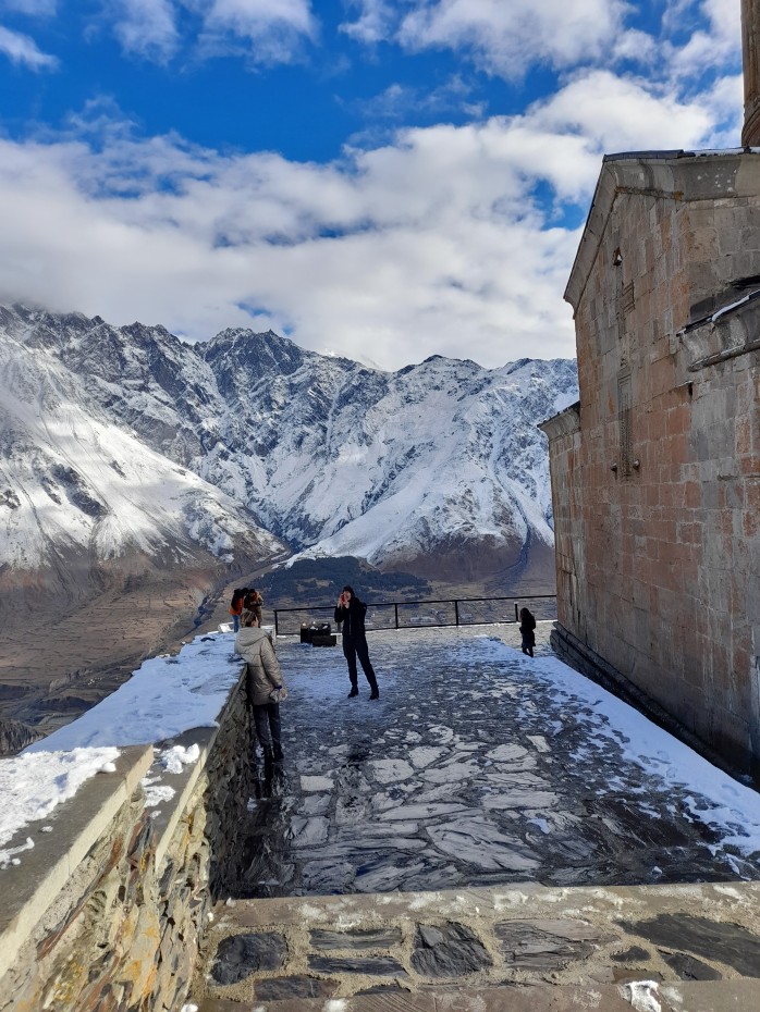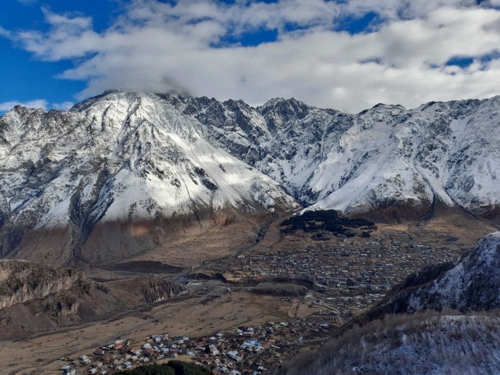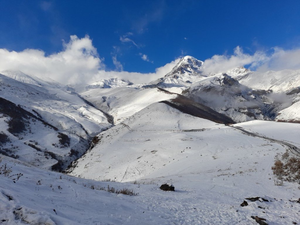 Jag bestämmer mig för att inte stanna i Stepantsminda. Det känns för sent på året för att kunna utnyttja vandringslederna med tanke på underlaget, och staden i sig känns ganska sömnig och utan sevärdheter. GoTrip-chaufförens förslag att åka till en sevärdhet i Sno lockar mig desto mer.