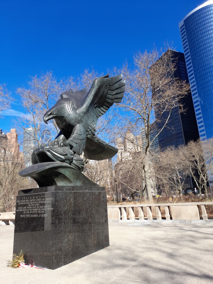 Efter en promenad runt statyn hoppar jag på en ny båt innan kön blir för lång. Den stannar till vid Ellis Island som är känt för sitt immigrationsmuseum. Det var till denna ö dom fattiga migranterna i tredje klass transporterades för medicinsk kontroll och för att få sina ansökningar behandlade. Jag tycker att det är en på tok för fin dag för att spendera inomhus på ett museum. Så jag sitter kvar på båten och väntar tills den åker vidare till Manhattan där jag går av. Jag passerar ett monument över 4601 män som vilar i Atlantens vatten efter att ha deltagit i strid under Andra Världskriget och dödats, innan det är dags att fortsätta upptäcka Manhattan.