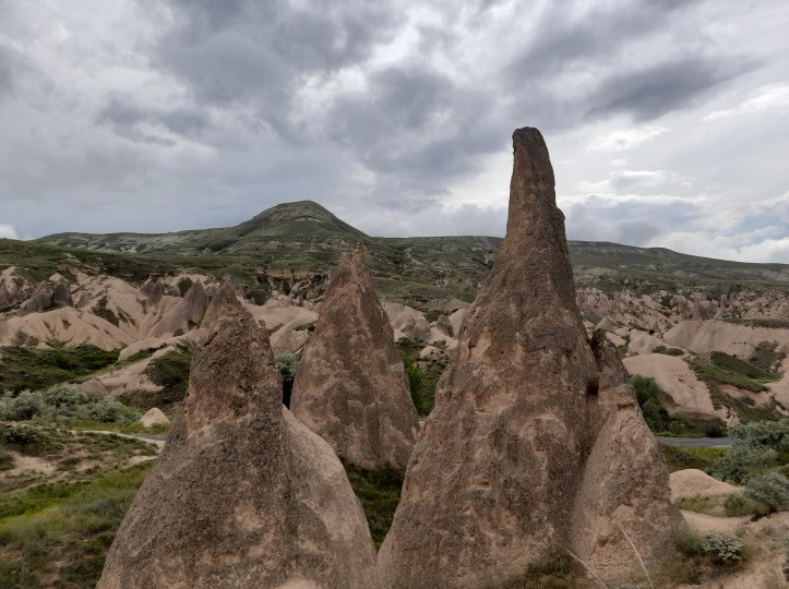 På avresedagen rullar en minibuss in framför mitt hotell. Chauffören har en lista där mitt rumsnummer står med, så att han trots sin dåliga engelska får med rätt person. Minibussen plockar upp fler personer vid olika hotell innan den åker till en bensinstation där vi får gå in i en stor buss där flera andra redan sitter. Det är den bussen som tar oss till Kappadokien. Snart framgår det att turisterna består av endast ryssar, och så jag. En ensam finländare bland ryssar… Men guiden skämmer bort mig genom att översätta allt han säger till engelska för att jag ska förstå. Glatt ovetande om att min hjärna är för trött för att hänga med och istället tänker ”oj vad många ord han kan”. Jag hade aldrig kunnat prata så länge, ens om mig själv.