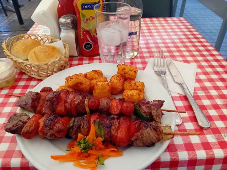 Vilken enorm portion med grillspett och så gott det ser ut. Det känns som om jag inte skulle behövt mar på flera dagar efter den.