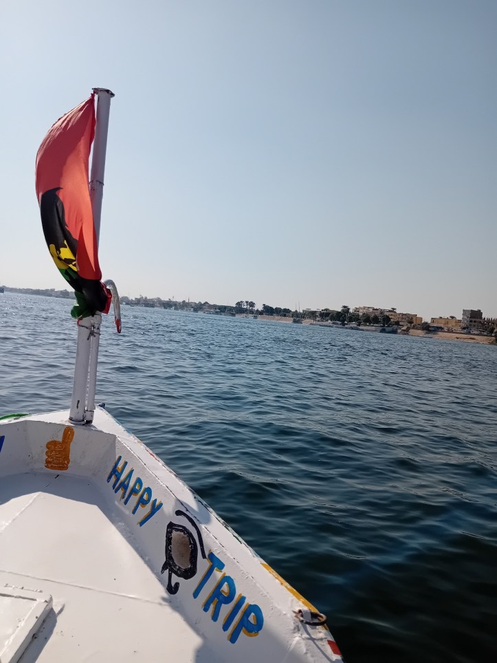 Vi har lämnat Karnak och det är dags för lunch. Den intas i närheten av Nilen på en buffèrestaurang och därefter går vi en kort promenad ner till båtarna som ska ta oss över till andra sidan. Det är en kort tur men en häftig känsla att färdas på denna berömda flod. Båtarna har ditmålade ögon som en symbol för beskydd.