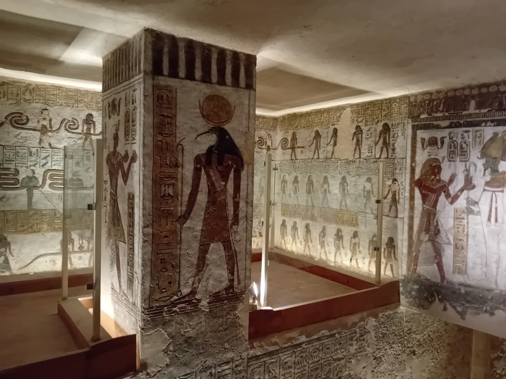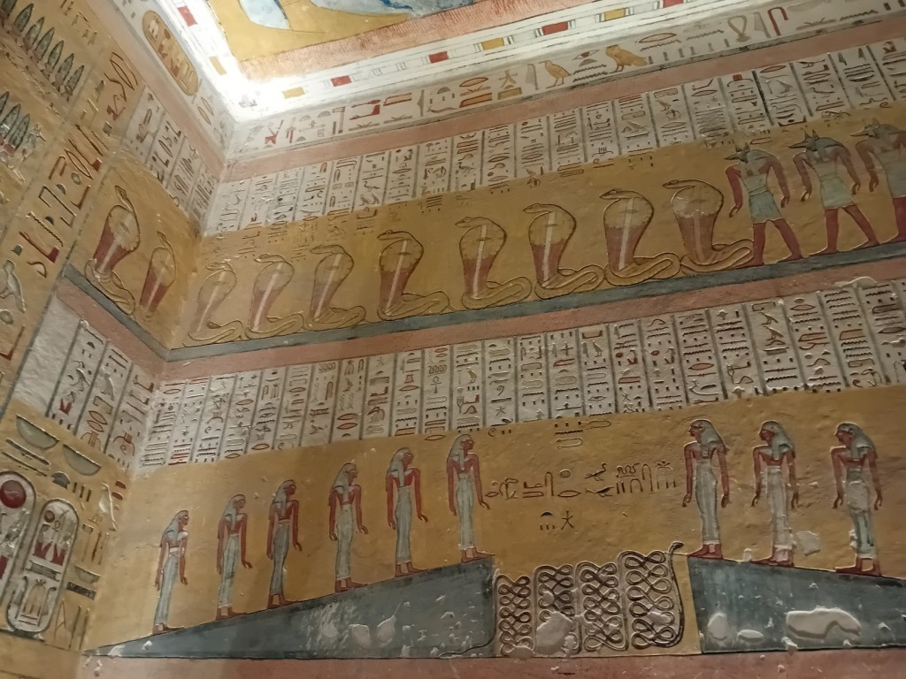 Ramses IX avled 1107 f. Kr och förärades med denna vackra grav som är totalt 105 meter lång, där mer än hälften av dekorationerna färdigställdes efter hans död.