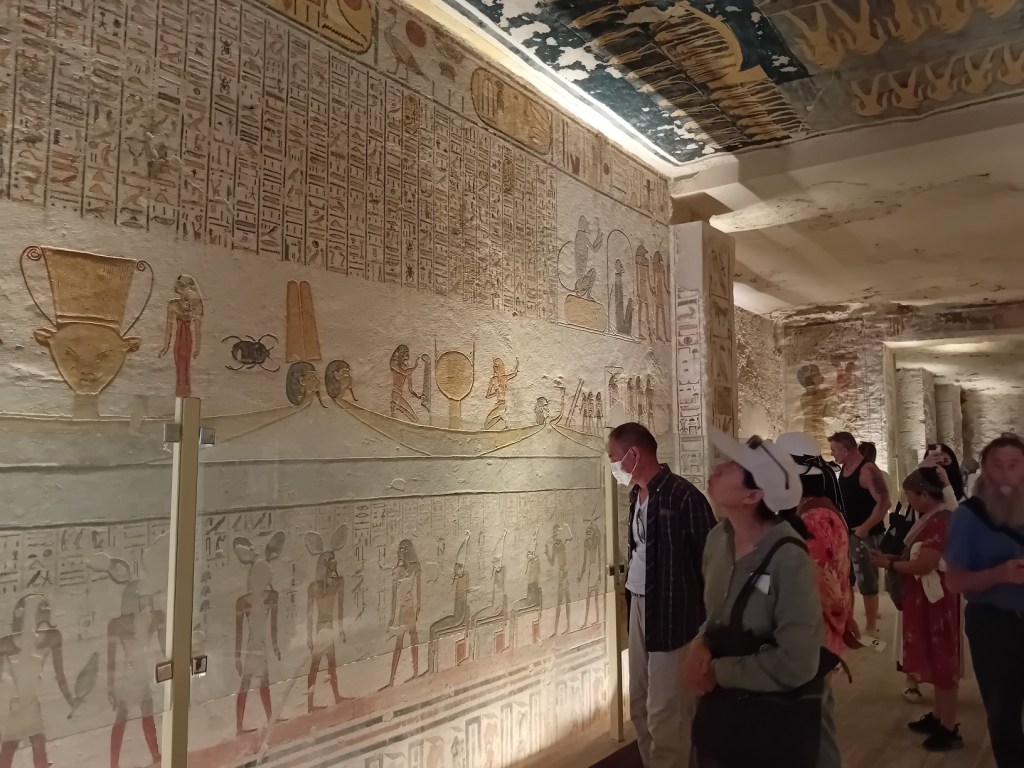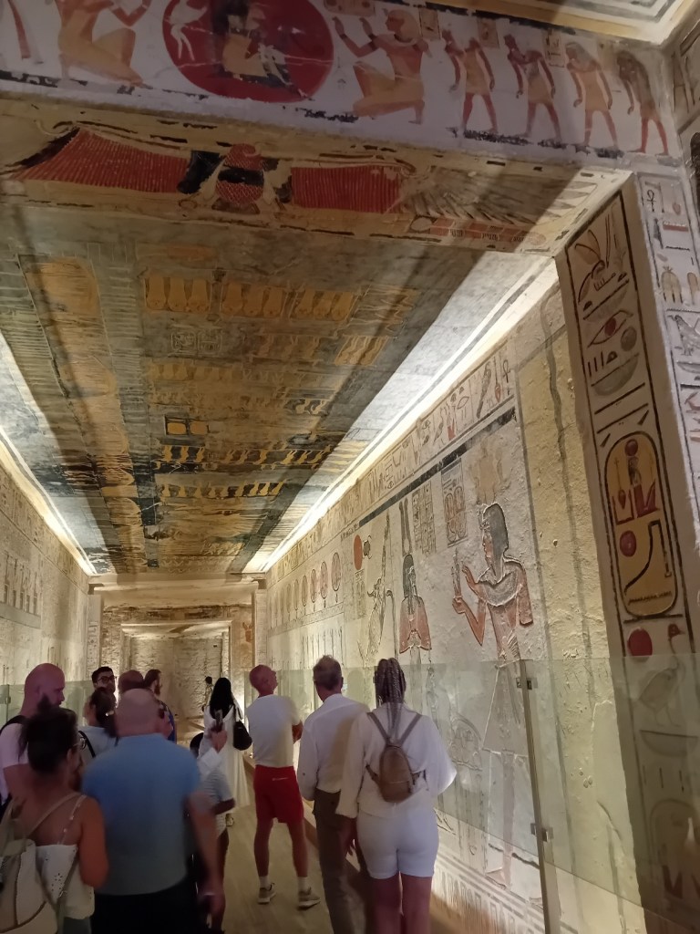 Gravarna besöks på egen hand och vi får en tid och plats då vi ska samlas igen. Tyvärr är vi ju inte ensamma utan andra arrangörer har också ankommit med sina kunder. Det är svårfotat då gravarna är fulla av folk och jag måste vänta in ett bra tillfälle. Jag kan inte se att jag hade hunnit med Tutankhamons grav, som säkert hade varit ännu mer fylld av folk.