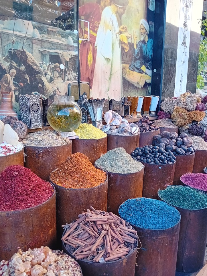 Efter en kort runda inser jag att jag lockas mer av sällskapet än av Hurghadas arkitektur. Så jag följer med mina vänner bland butikerna. Inga köp för min del, men desto fler skratt. Och arab-ländernas kryddor tycker jag alltid är intressant att titta på.