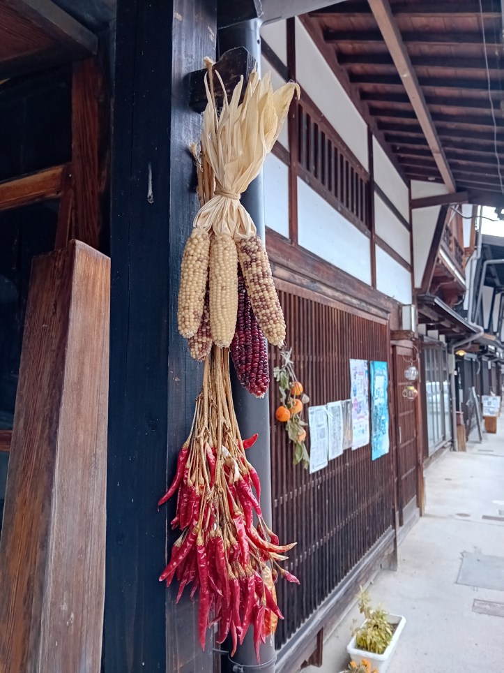 Narai blev den rikaste av rastplatserna längs Nakasendo och fick en gata på över en kilometer kantad av värdshus och butiker. Den gatan går jag längs och beundrar dom gamla byggnaderna och detaljer som dyker upp längs vägen.