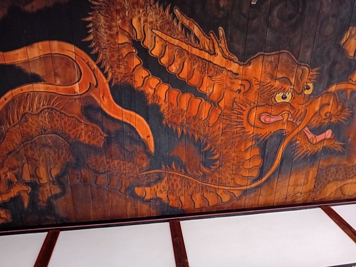När man kommer in gäller det att rikta blicken uppåt. För i taket finns en magnifik, cirka 140 år gammal målning på en drake.