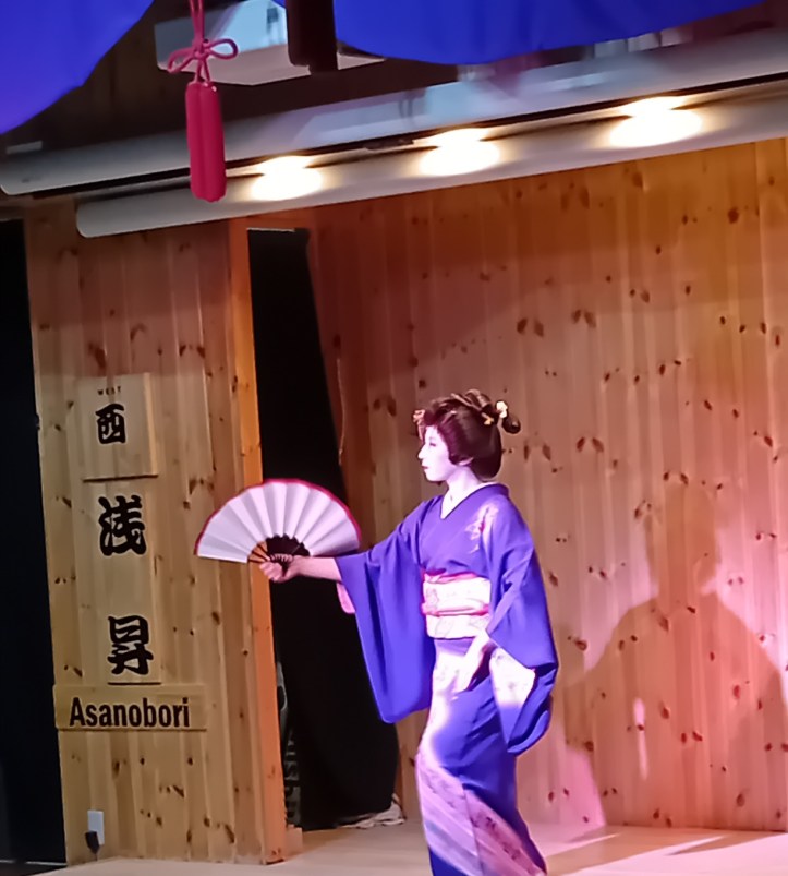 Showen börjar med en geisha som elegant rör sig till traditionell japansk musik. En av anledningarna till att jag valde denna tur var för att få uppleva både geisha och sumobrottare. En rejäl dos japansk kultur på en kväll.