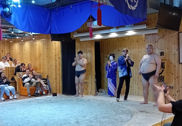 Den här föreställningen hade jag nog haft lite svårt för och jag gillar inte när turister ska tas upp och medverka. Samtidigt fascineras jag av sumobrottningens historia och kultur. Tack för att du delar med dig av både upplevelser och fakta!