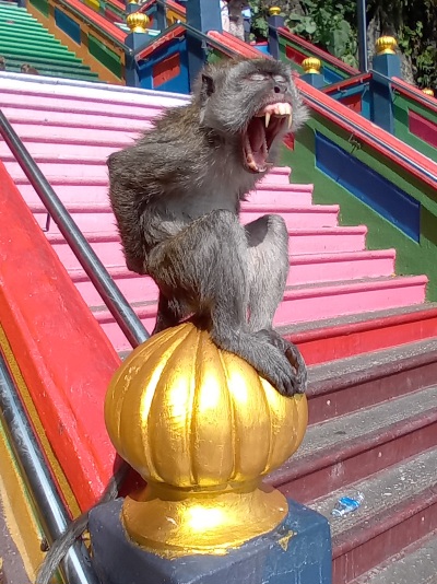 Den apan ser så arg ut och vilka tänder! Minns från vårat besök där att de var ena riktiga tjuvar, helt ok med apor på avstånd men inte så nära. Trevlig fortsatt resa.