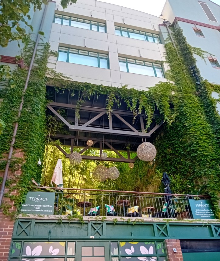 Citat från min reseguide-bok från Lonely Planet: Sydneys första europeiska bosättning vid The Rocks var en eländig, överbefolkad plats. Invånarna plaskade fram genom öppna avlopp och i gränderna frodades sjukdomar, prostitution, fylla och brottslighet.
