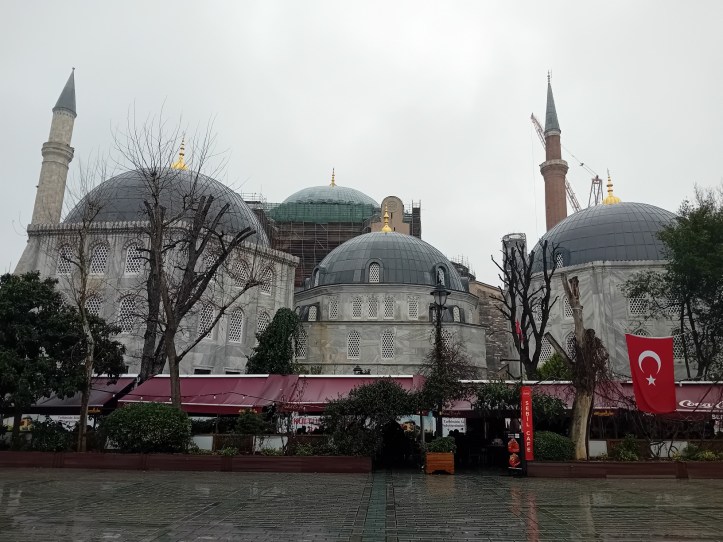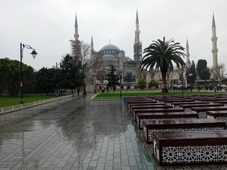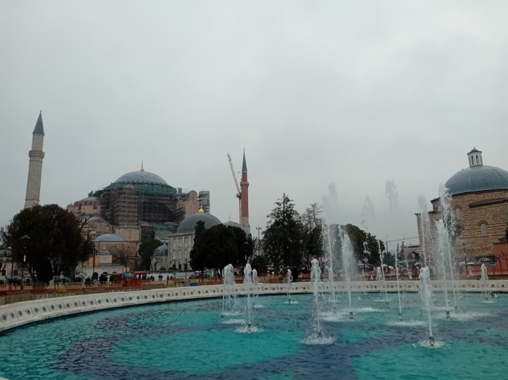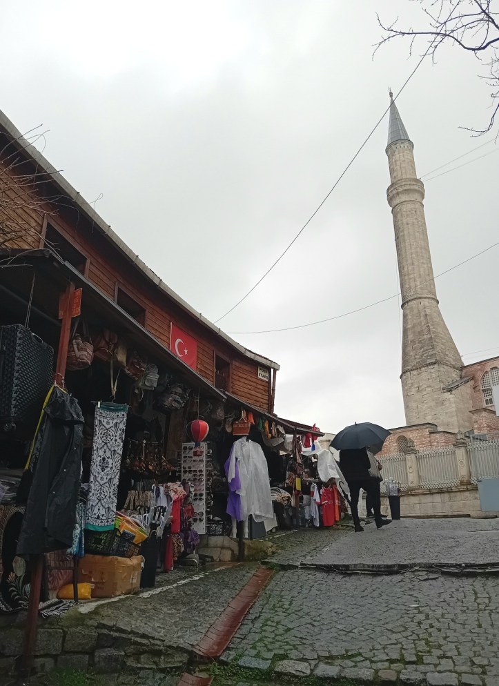 Idag är humöret inte på topp. Jag är trött sen den långa resan, det spöregnar större delen av tiden vilket såklart drar ner humöret även om jag är glad över att ha mitt paraply med mig, och så försäljare som ska ”hjälpa” mig genom att peka ut entrèn till Hagia Sofia eller moskèn för att sedan försöka locka mig till deras butik när dom inser att jag inte är på väg dit.