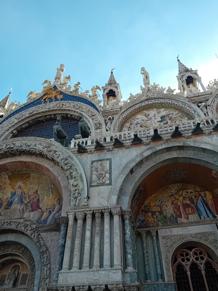 Ah… mornarna i Venedig. Då solen redan värmde gott och dom stora turistmassorna inte gett sig ut på gatorna. Då annars folktäta Markusplatsen till och med kunde framstå som lugn. Den har fått sitt namn från Sankt Markus som är Venedigs skyddshelgon. Hans reliker ska ha stulits ifrån Alexandria av venetianska handelsmän och förts över till Venedig år 828. En kyrka byggdes till hans ära, där relikerna placerades.