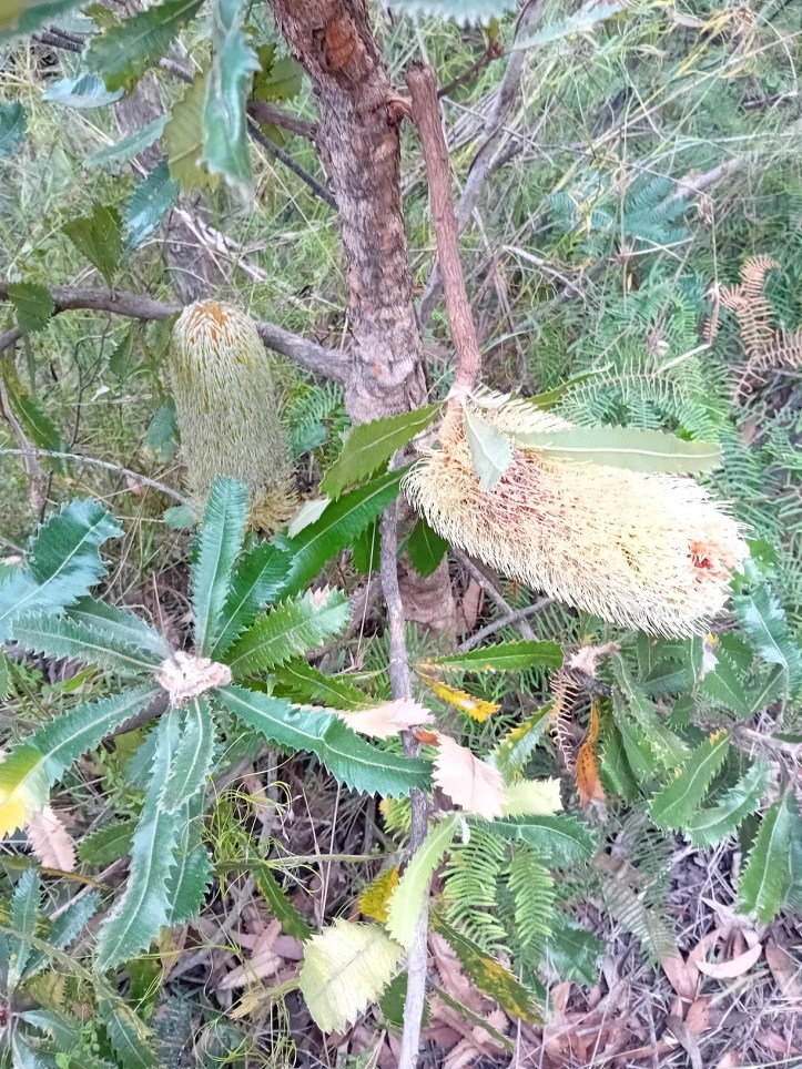 Därifrån går vi vidare längs grönskan och min blick fastnar på en blomma som jag i efterhand googlat fram är en banksia. Jag kan ingenting om blommor, men när jag ser något så annorlunda väcks min nyfikenhet till liv.
