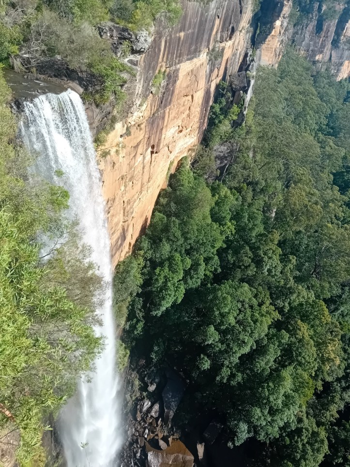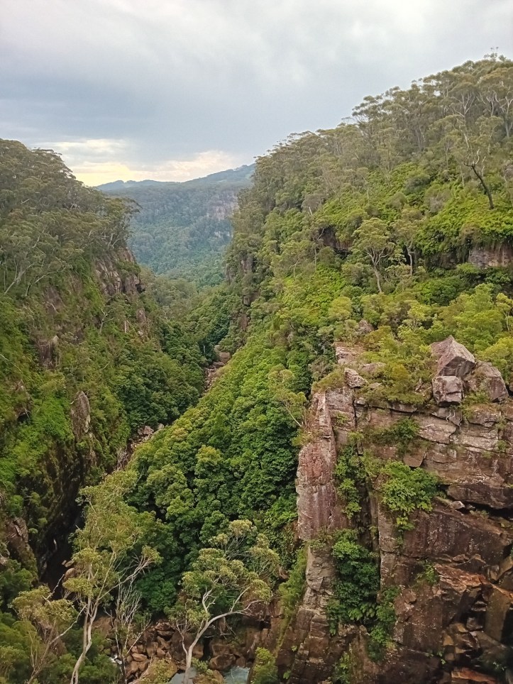 Ytterligare en timmes bilkörning vilket ger molnen tid att skingra sig och visa upp nästa stopp från sin bästa sida. Vi är inne Morton National Park där vi parkerar, promenerar förbi besökscentret och mot utsikten över Fitzroy Falls . Ett 80 meters fall som är lika spektakulärt som den omgivande naturen. Den här vyn älskar jag.
