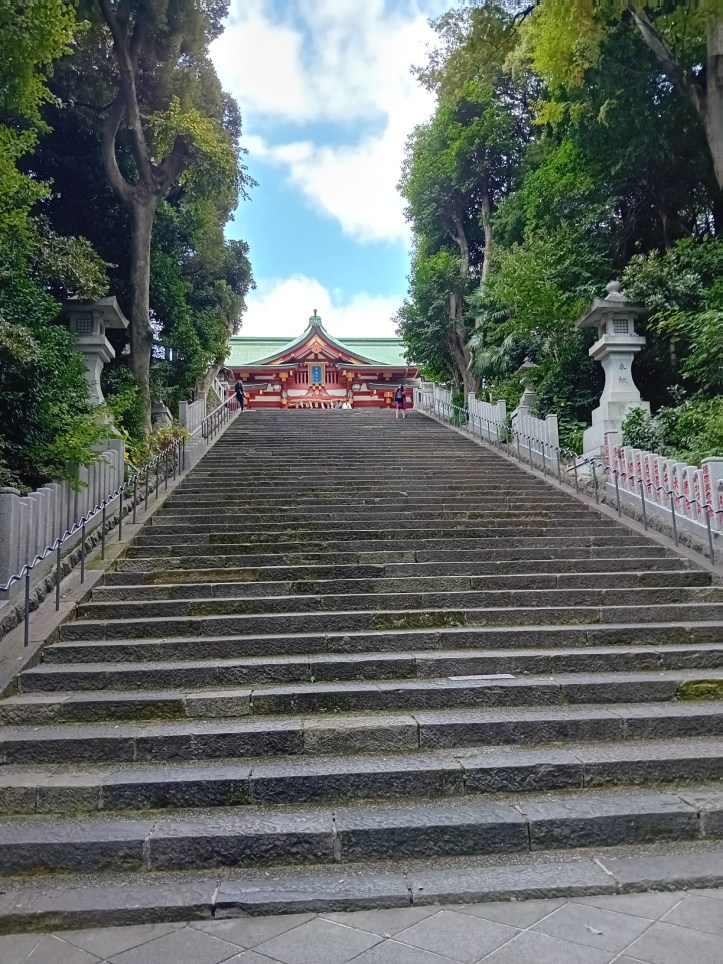 Jag går uppför trappan som tar mig till Hie-helgedomen.