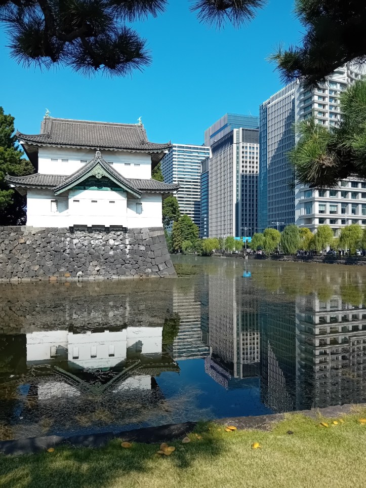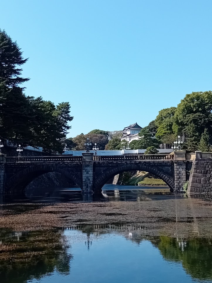 Via trappan tar jag mig ut på gatan och vidare mot platsen där Edoslottet stod. Det byggdes 1457 och var shogunens residens. Shogunen var ledaren under Edo-perioden som avslutades när makten övergick till kejsaren Meiji, som tog över slottet 1868 och gjorde det till kejserligt residens.